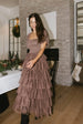 The Mia Tulle Maxi Dress brings a dreamy vibe with its seven flowing tulle tiers and smocked bodice. Perfect for a special occasion, it pairs effortlessly with simple heels for a graceful look.