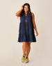 Every day feels like a vacation in this loose, light and flowy linen dress. Her captivating tiered silhouette is ready to spin, while simple side pockets await sea shells and sea glass.