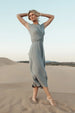 The Vaeda Ribbed Tie Dress in Slate Blue has us absolutely twitterpated. There are so many ways to wear this dress. Cross and wrap the ties over the bodice and knot in the back for a fitted look. Pair with some heels and a simple handbag.